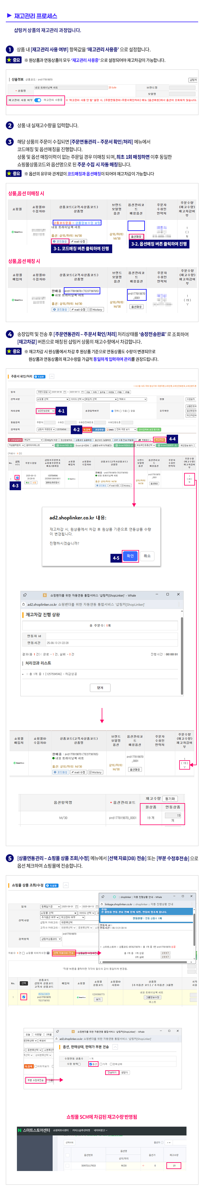 2. 적용 내용 : 샵링커를 통한 재고관리 기능